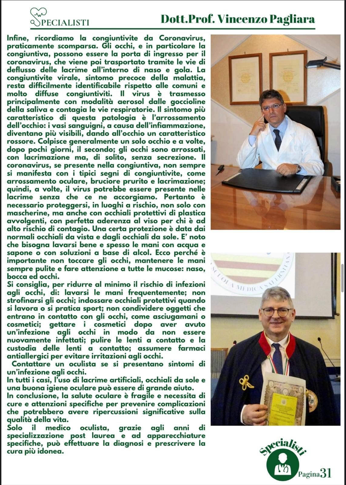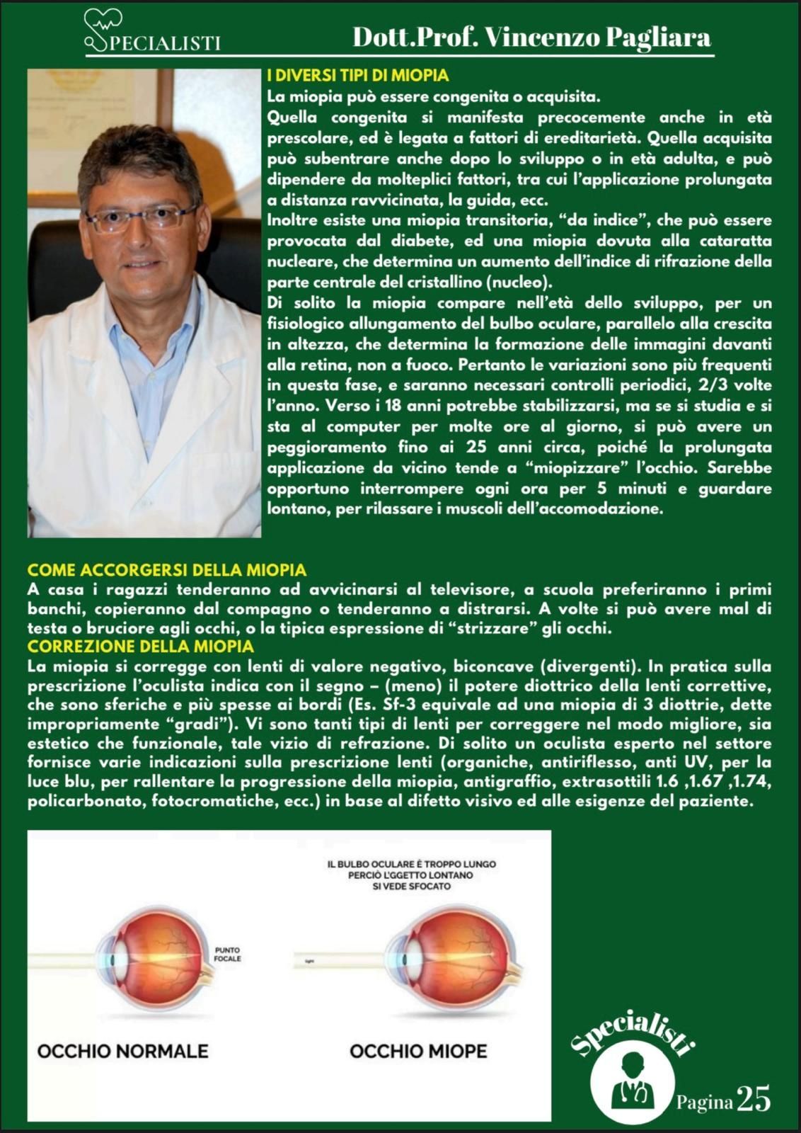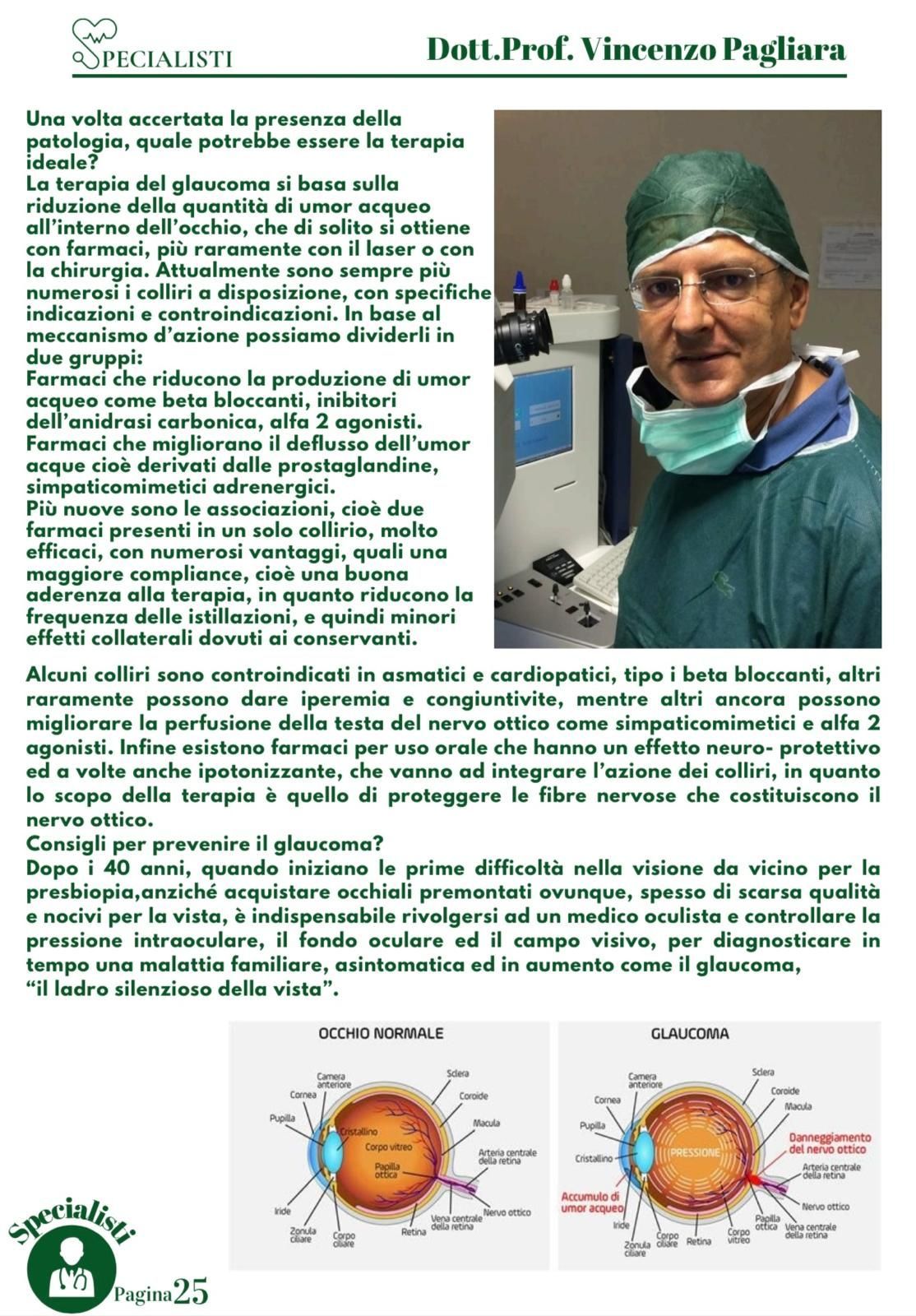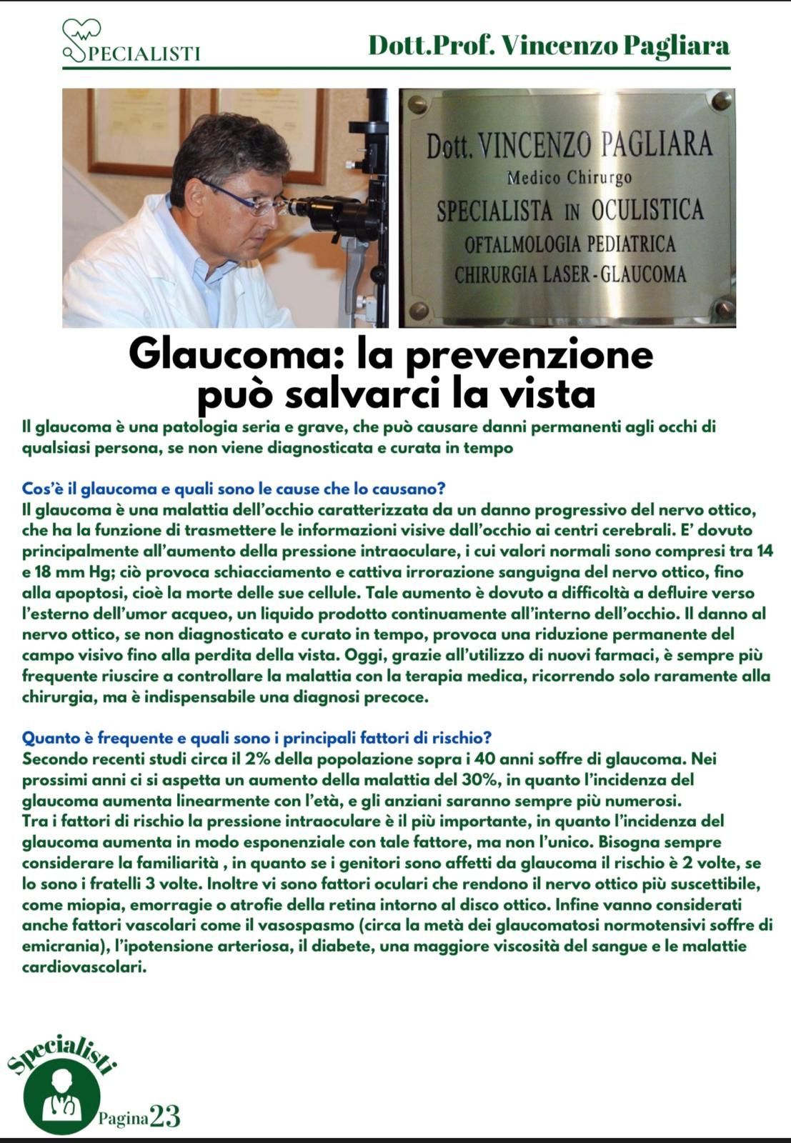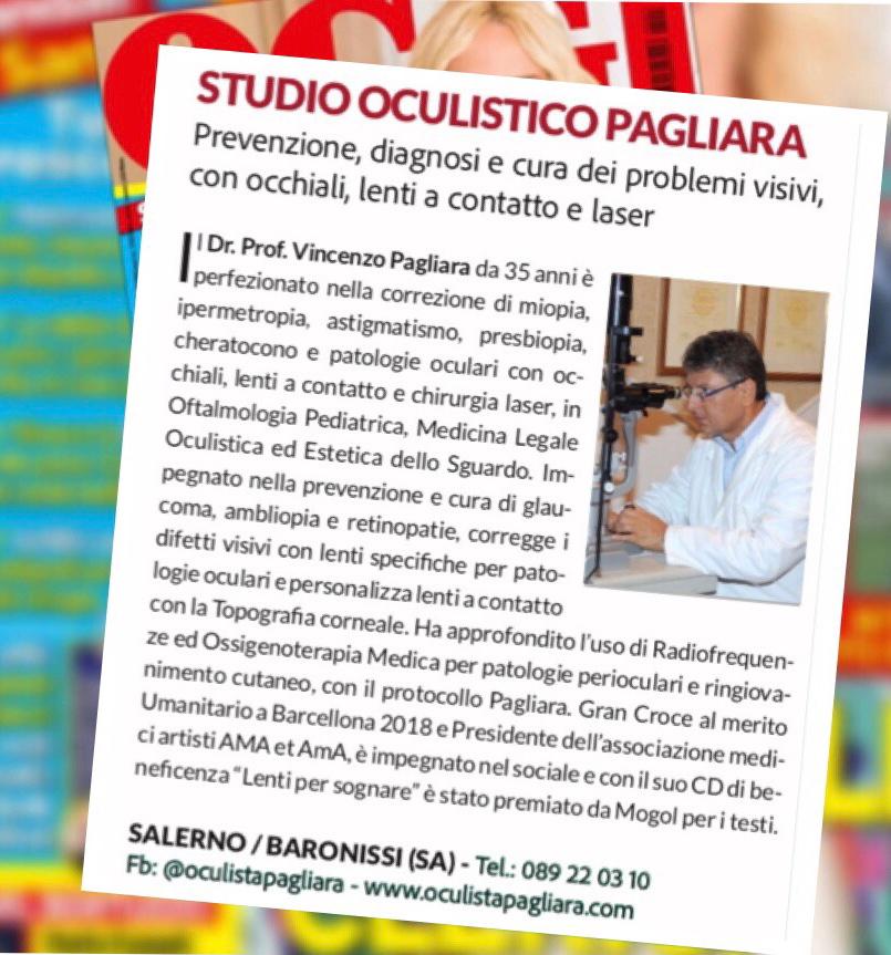 Il prof. Vincenzo Pagliara è un medico e chirurgo di fama a Salerno che da molti anni svolge visite oculistiche anche private presso il suo studio. Il dottore è specializzato in diagnostica oculistica attraverso l’uso di macchinari innovativi e di rigore scientifico che permettono di svolgere esami non solo accurati ma rapidi, per poter intervenire con le terapie più efficaci prima che la malattia possa degenerare in patologie più gravi.